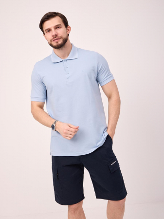 Классическая мужская футболка поло F5, Regular fit (полуприлегающий силуэт), с вышивкой-фирменным логотипом. Выполнена из трикотажного полотна пике (pique). С отложным воротником и короткими рукавами. Застежка-планка застегивается на 3 пуговицы.