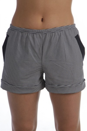 Шорты женские прямые на поясе с резин-кой с боковыми карманами с листочками, с манжетами по низу.