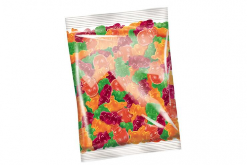 Состав продукта: глюкозно-фруктозный сироп, сахар, желатин, регулятор кислотности- лимонная кислота; концентрированные соки- яблочный, вишневый, апельсиновый, клубничный, лимона, черной смородины, черной моркови; агент желирующий- пектины; глазирователи- воск карнаубский, воск пчелиный, белый; натуральные ароматизаторы, красители- бета-каротин, куркумин, синий блестящий FCF; витамины- С, В6, ниацин, пантотеновая кислота, фолацин.