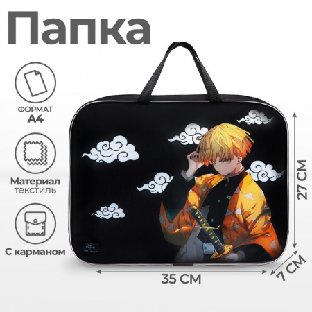 Папка с ручками текстильная А4, 350 х 270 х 70 мм, Calligrata "Аниме клинок" (арт. 10201154)