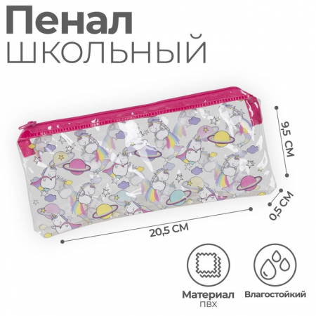 Пенал мягкий 1 отделение, 95 х 205 мм, плоский, ПВХ, Calligrata "Единорог" (арт. 4422326)
