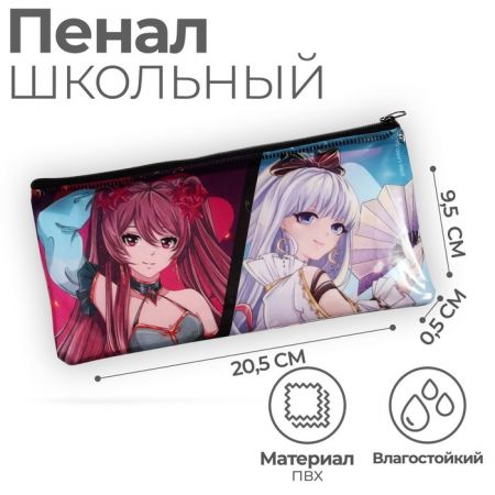 Пенал мягкий 1 отделение, 95 х 205 мм, плоский, ПВХ, Calligrata "Девочка аниме" (арт. 9626588)