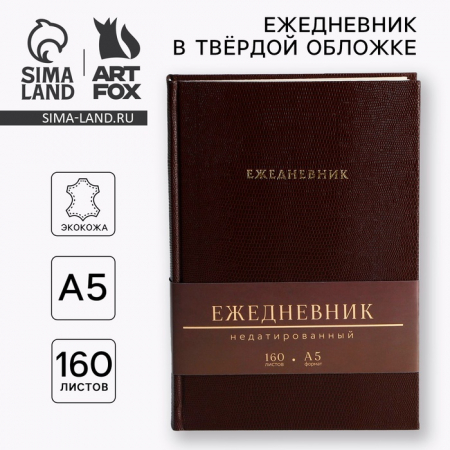Ежедневник недатированный А5, 160 л. Твердая обложка. Кожзам. Кремовый блок. «Крокодил» (арт. 10058923)