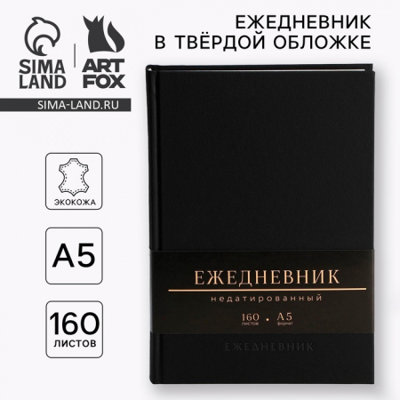 Ежедневник недатированный А5, 160 л. Твердая обложка. Кожзам. Черный. Кремовый блок (арт. 10058925)