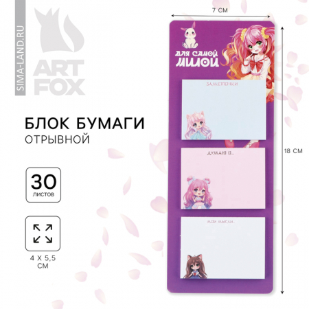 Блок для записей с отрывными листами, 3 шт/30 л «Аниме» (арт. 10048499)
