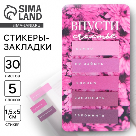 Стикеры-закладки, на подложке «Впусти счастье» 5 шт, 30 л (арт. 9575070)