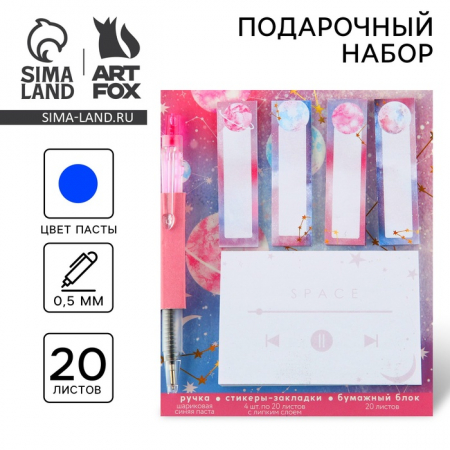 Подарочный набор стикера-закладки и ручка «Космос», 20 л. в блоке (арт. 9879857)