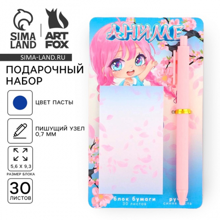 Подарочный набор ручка шариковая и блок бумаги 30 л «Аниме» (арт. 9877851)