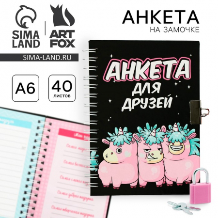 Анкета на замочке, в твердой обложке А6, 40 листов «Все друзья в сборе» (арт. 4972952)