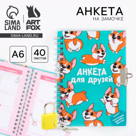 Анкета на замочке, в твердой обложке А6, 40 листов «Корги» (арт. 9582381)