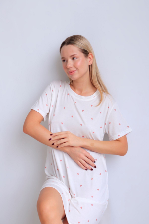 14691 Платье домашнее белое с сердечками (арт. 14691)