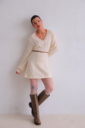 15450 Платье вязаное с косами "айвори" (арт. 15450)
