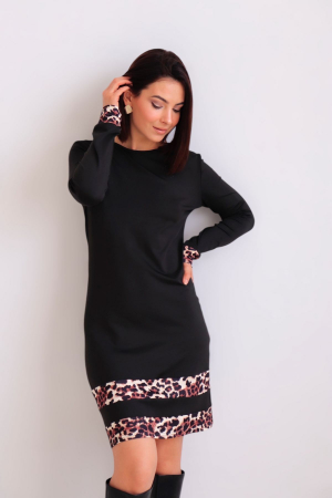 16038 Платье чёрное с анималистичными вставками (арт. 16038)
