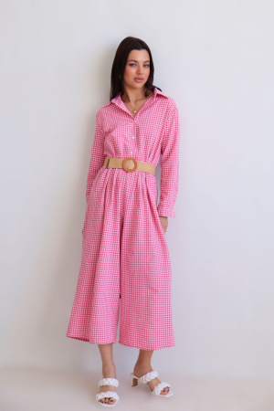 16210 Комбинезон хлопковый розовый в клетку виши (арт. 16210)