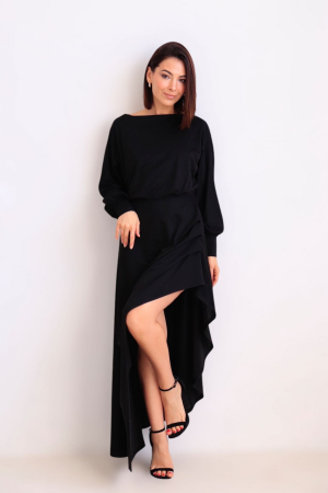 16032 Платье чёрное с разноуровневой юбкой (арт. 16032)