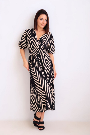 15988 Платье с V-образным вырезом бежево-чёрное (арт. 15988)