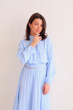 16055 Платье голубое с юбкой-плиссе (арт. 16055)