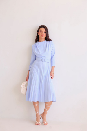16049 Платье голубое с юбкой-плиссе (остаток: 50-52) (арт. 16049)