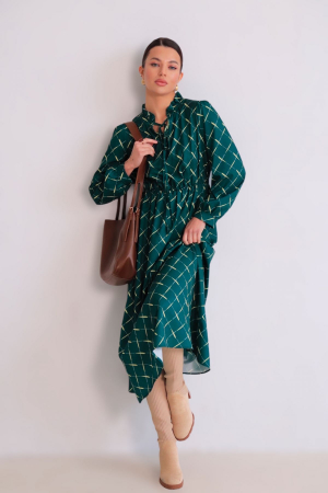16271 Платье изумрудное с воротничком на завязках (остаток: 42, 44, 46) (арт. 16271)