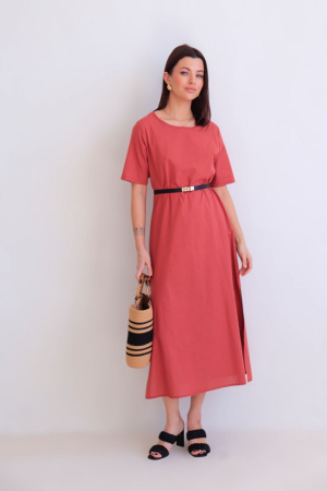 16192 Платье хлопковое с разрезами в красном оттенке (арт. 16192)