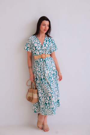 16263 Платье зелёное с белыми цветами (арт. 16263)