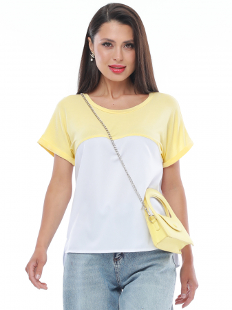 Блузка двухцветная - это не только стильный элемент летнего гардероба, но и практичный и удобный выбор для женщин, ценящих комфорт и качество в одежде. Эта блузка выполнена из двух типов ткани: трикотажа и ниагары, обеспечивая комфорт и приятное ощущение на теле. Округлый вырез горловины придает блузке классический вид и делает ее универсальной, подходящей для различных событий и обстановок. Короткие рукава добавляют блузке легкости и свежести, идеально подходя для жарких летних дней. Для ухода за этой блузкой рекомендуется бережная стирка при температуре 30 градусов, что поможет сохранить ее качество и цвет на долгое время.