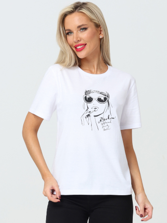 Белая футболка - это классический элемент гардероба, который подходит для любого сезона. Изготовлена из качественного трикотажного материала, обеспечивающего комфорт и удобство в повседневном использовании. Округлый вырез горловины делает её универсальной и подходящей для различных стилей одежды. Короткие рукава обеспечивают свободу движения и дополнительный комфорт в жаркую погоду. Термопечать добавляет оригинальности и стиля этой футболке. Легкий уход - бережная стирка при 30 градусах - делает её удобным и практичным выбором для ежедневного использования.
