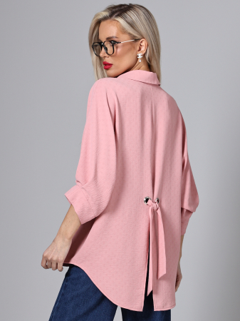 Удлиненная блузка пыльно-розового цвета выполнена из блузочной ткани, обеспечивающей комфорт при носке. Объемные цельнокроеные рукава создают выразительный силуэт, а рубашечный воротник добавляет строгости. Пыльно-розовый цвет делает модель универсальной для разных ситуаций. Блузка подходит для повседневной носки, офисного стиля и представлена в больших размерах, что обеспечивает удобную посадку для разных типов фигур. Складки на рукавах и свободный крой, добавляющие образу стильности. Уход требует бережной стирки при 30 градусах, что сохраняет качество ткани.
