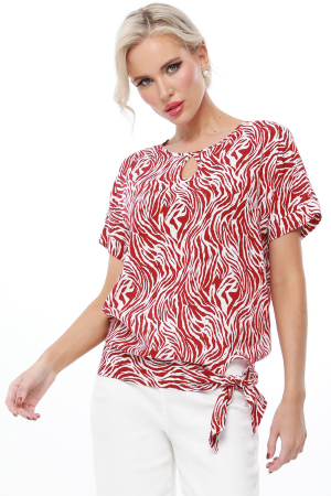 Блузка универсального цвета создана для летнего сезона и выполнена из легкой и приятной на ощупь вискозной ткани. Округлый вырез горловины дополнен элегантной каплей, добавляющей утонченности и привлекательности изделию. Короткие рукава с аккуратными подворотами придают блузке современный и стильный вид. Особенностью этой модели является декоративная завязка, расположенная снизу сбоку, что добавляет оригинальности и позволяет регулировать посадку изделия по фигуре. Блузка легко сочетается с различными элементами гардероба, идеально подходя как для повседневных, так и для более торжественных случаев. Для сохранения первоначального вида и структуры ткани рекомендуется бережная стирка при температуре не выше 30 градусов.
