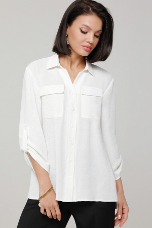 Базовая блузка на пуговицах с карманами — основа гардероба, благодаря которой можно составить стильные и элегантные образы на все случаи жизни. Свободный прямой силуэт со слегка удлиненной спинкой и разрезами по бокам не подчеркивает нюансы фигуры и позволяет чувствовать себя комфортно. Особый шарм и утонченность придают блузке рукава ?, собранные патами. Два нагрудных кармана функциональны и добавляют образу расслабленные нотки. Стильную блузку можно носить как навыпуск, так и заправленной полностью или только спереди, чтобы создать акцент на талии и визуально удлинить ноги. А сочетать модель с другими элементами гардероба не составит труда. Универсальная блузка прекрасно смотрится в паре с джинсами, брюками и юбками различных фасонов. Рекомендуется стирать изделие в бережном режиме без отжима.