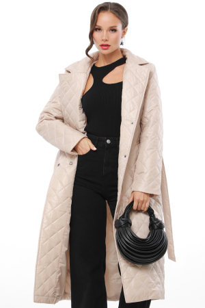 Стеганое пальто длины миди с поясом — элегантная модель, которая поможет выглядеть стильно и женственно даже в прохладное время года. Классический фасон с отложным воротничком, застежкой на кнопки и разрезом сзади безупречно смотрится на женщинах любой комплекции и зрительно вытягивает силуэт. С помощью пояса из комплекта можно создать привлекательный акцент на талии и приблизить фигуру к эталонным очертаниям «песочных часов». Два кармана по бокам функциональны, но при этом не добавляют лишнего объема. Пальто выполнено из влагоотталкивающего плащевого материала с утеплителем, который хорошо сохраняет тепло и прекрасно подходит для прохладных осенне-весенних дней и еврозимы. Стирать модель лучше в деликатном режиме при температуре до 30 градусов без отжима с использованием жидких моющих средств, сушить на плечиках.