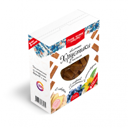 Яблочные Хрустики из пастилы "С имбирём", "С топинамбуром", "С голубикой и коллагеном" от компании «Русские традиции» - это фирменный продукт, который готовится по старинному русскому рецепту 1888 года из яблок «Антоновка». В составе хрустиков исключительно натуральные ингредиенты без добавления сахара, глютена, красителей и консервантов. Каждый кусочек изготовлен в печи и упаковывается вручную. Так мы сохраняем всё самое полезное и вкусное, чтобы Вы получали всё самое необходимое. Приятного аппетита!