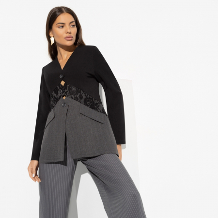 Представьте себе, как ваши клиенты будут поражены, когда вы предложите им модный жакет, который сочетает в себе роскошный «тиар» и утонченное кружево. Этот жакет создан для тех, кто хочет выделяться из толпы и заявить о своем уникальном стиле. Покупка оптом этого изделия станет отличным решением для магазинов, стремящихся предложить своим клиентам нечто особенное. Приталенный силуэт и декоративный крой по спинке изделия превращают его в образец современного стиля. Это не просто одежда, это способ самовыражения и уверенное заявление о безупречном вкусе.