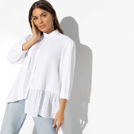 Эта рубашка, словно ода любви к моде, станет вашим лучшим союзником в создании стильного образа. «Amore» — единственное слово, которое приходит на ум при взгляде на нее. Нежная и обволакивающая, она красноречиво расскажет о вашем безупречном вкусе. Асимметричный крой, три четверти рукава и воротник-стойка добавляют модели индивидуальности и современности.