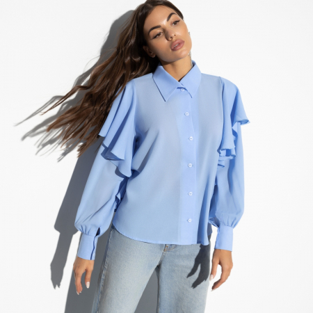 Рукава-крылышки этой рубашки — истинное произведение искусства, способное заворожить одним лишь движением. Они добавляют образу причудливую нотку нежности и романтики, что особенно актуально для современных женщин, стремящихся создать гармоничный баланс в своем гардеробе. Украсьте свой магазин или бутиковую витрину сразу несколькими экземплярами — приобретение оптом позволяет удобно пополнить ассортимент, увеличивая возможности для своих клиентов в выборе. Будьте уверены, эта рубашка станет настоящей находкой для тех, кто ценит стиль и качество.
