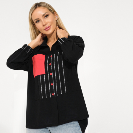 Приобретение этой рубашки оптом даст вам возможность предложить своим клиентам изделия, которые вдохновляют своим дизайном. Эта рубашка станет идеальным выбором для особых случаев ? будь то вечерние выходы, деловые встречи или романтические свидания. Комментарий стилиста убеждает: «В самое сердечко!» ? именно туда стреляет стрелы любовь к совершенству и стильным акцентам. Ткань «креп» и «жатка» обеспечивает комфорт как в прохладные вечера, так и в жаркие дни, позволяя оставаться стильной и уверенной в себе.