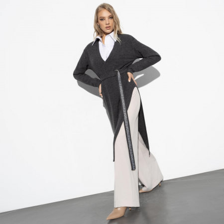 Выбор этой туники придаст каждому вашему образу нотку загадочности и утонченности, которые так необходимы в современном мире моды. Длинные разрезы создают ощущение бесконечного движения, а пояс с животным принтом — это не просто тренд, это вызов обыденности! Оптом приобретая ультрамодные туники, вы всегда будете в центре внимания и сможете радовать окружающих своим индивидуальным стилем. Не упустите возможность обновить ваш гардероб, добавив в него изделие, способное легко справиться с задачей покорения сердец и умащения путей к чуду моды!