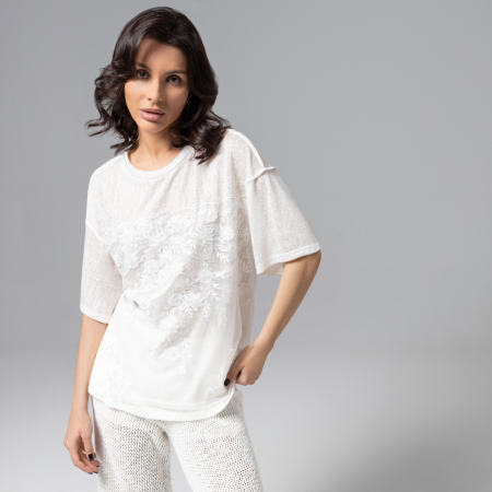 Футболка комбинированная с вышивкой, Буду тебе сниться (айвори)