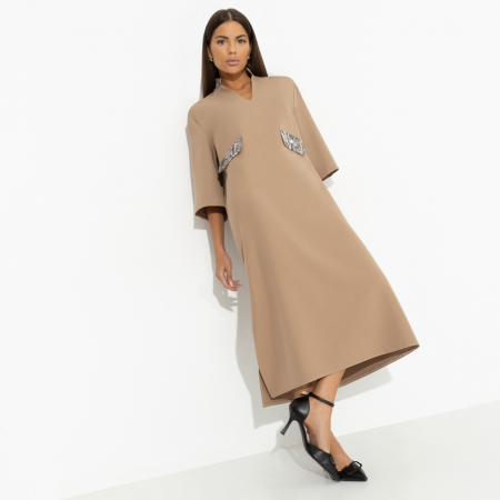 Платье с имитацией карманов, Деловая леди (миндальный)