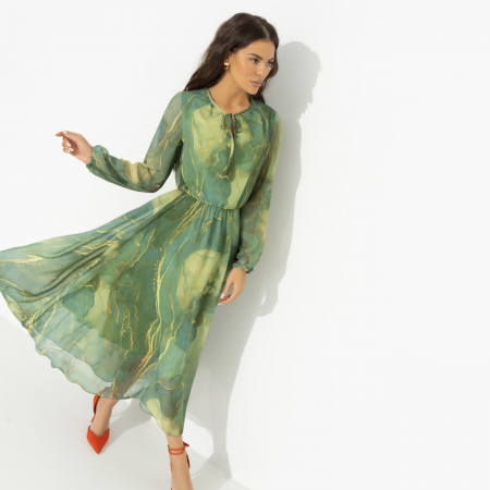Платье приталенное на подкладе, Летящие мгновения (green, new)