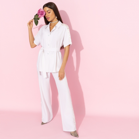 Брючный костюм со вставками из кружева, Престижная номинация (серый, 2 в 1, с поясом)