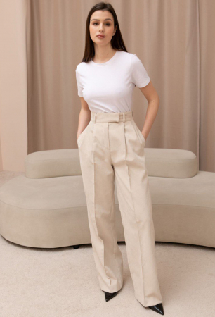 Брюки с высокой посадкой. Застежка на молнию, потайной крючок и пуговицу. Брюки выполнены из мягкого вельвета