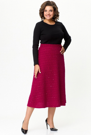 Юбка формы “колокол”, длиной за колено, выполнена из однотонного трикотажного полотна “букле“, юбка на подкладке.