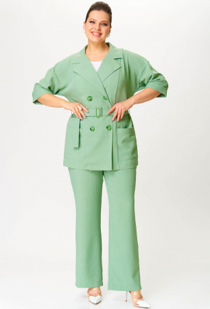 Костюм состоящий из жакета и брюк выполнен из однотонной ткани.