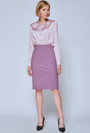 Юбка-карандаш на обтачке, в среднем шве спинки обработаны потайная молния и шлица. На подкладке.