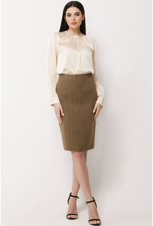 Юбка-крандаш на обтачке, в среднем шве спинки обработана потайная молния и шлица, на подкладке.