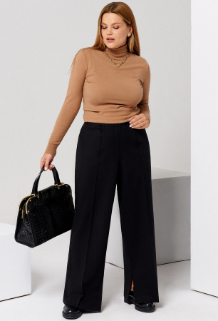 Широкие брюки с разрезами по шаговому шву.