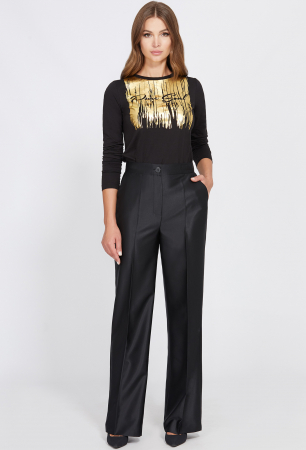 Свободные брюки со стрелками. Изделие с застёжкой на молнию и петлю-пуговицу.