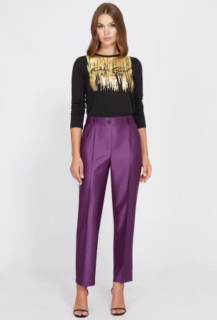 Брюки на притачном поясе со шлёвками, с застёжкой на молнию и две петли-пуговицы. Передние части с косыми карманами. Задняя правая часть с карманом-обманкой с рамками.