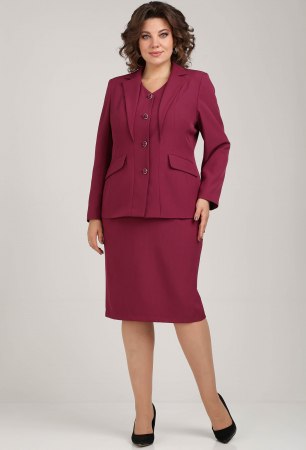Костюм состоящий из жакета и юбки выполнен из однотонной ткани. Костюм на подкладке.